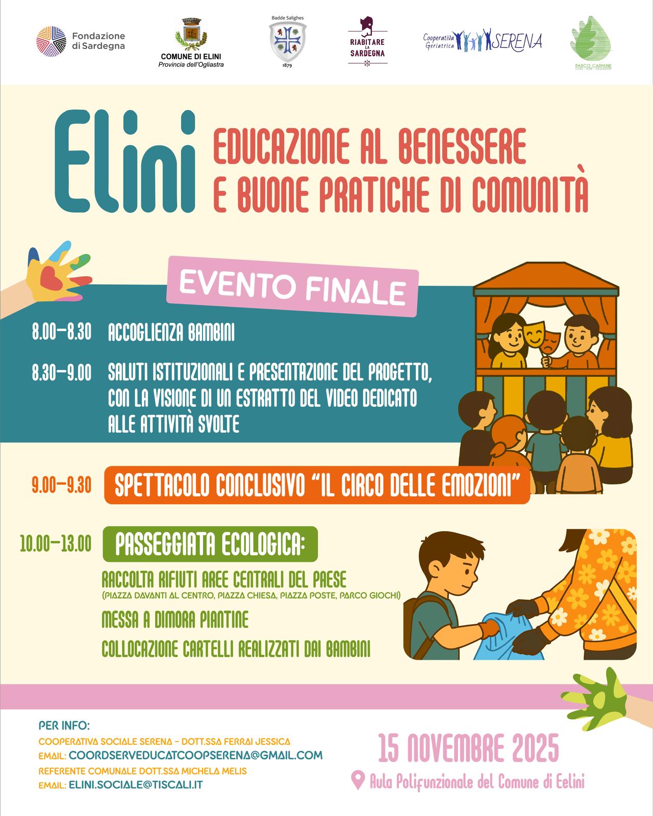 Progetto " Elini: educazione al benessere e buone pratiche di Comunità" per minori dai 6 agli 11 anni. Evento finale - Sabato 15 Novembre 2025